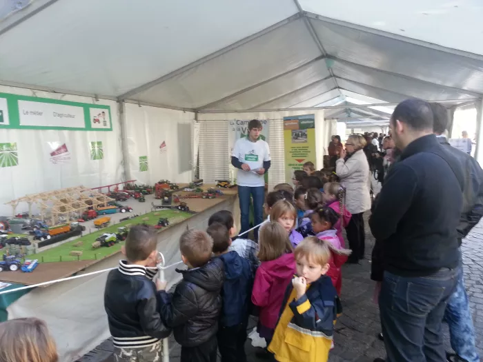 En effet, cette année le thème retenu était « L'agriculteur au cœur des métiers ». Ainsi, différents ateliers ont été présentés autour de la découverte des activités de l'agriculteur, des filières de transformation avec la présentation des métiers des coopératives, et des métiers de l'élevage et du maraîchage ...