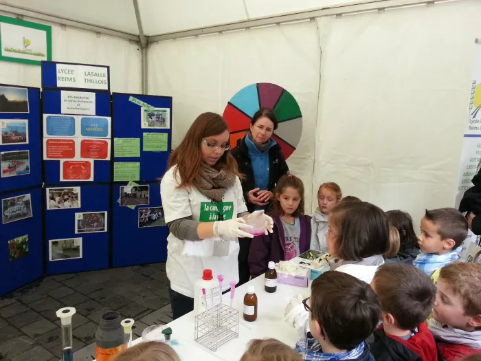 Enfin, le lycée a présenté des stands en lien avec ses formations touchant aux biotechnologies et aux laboratoires. Un autre stand était consacré à la culture : les plus jeunes ont pu planter et les plus grands se sont mis aux commandes d'un engin agricole virtuel.