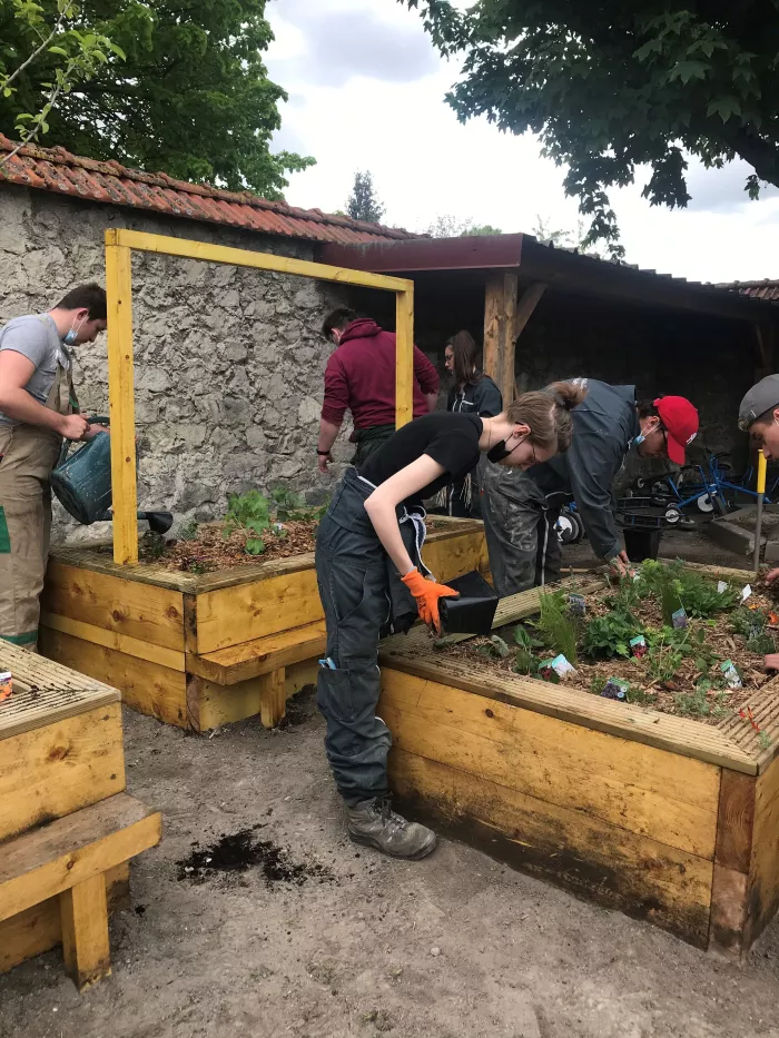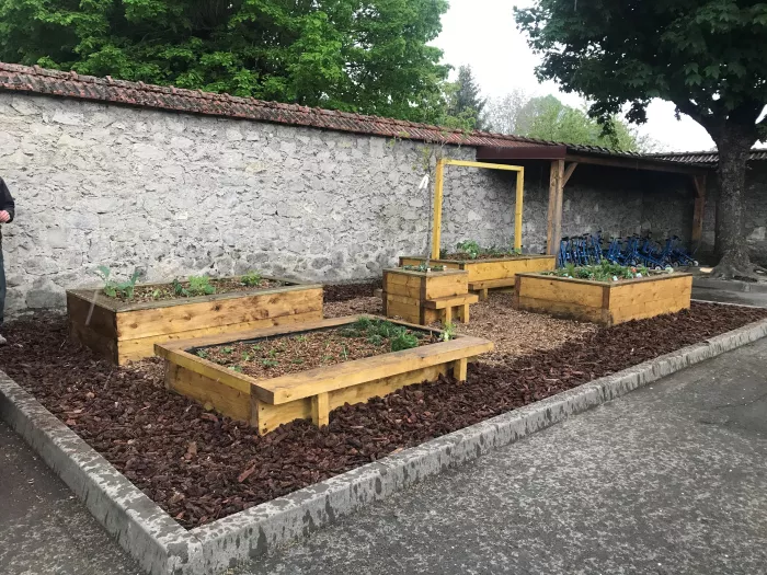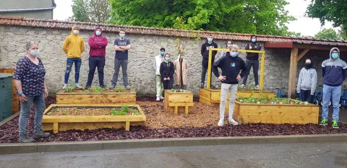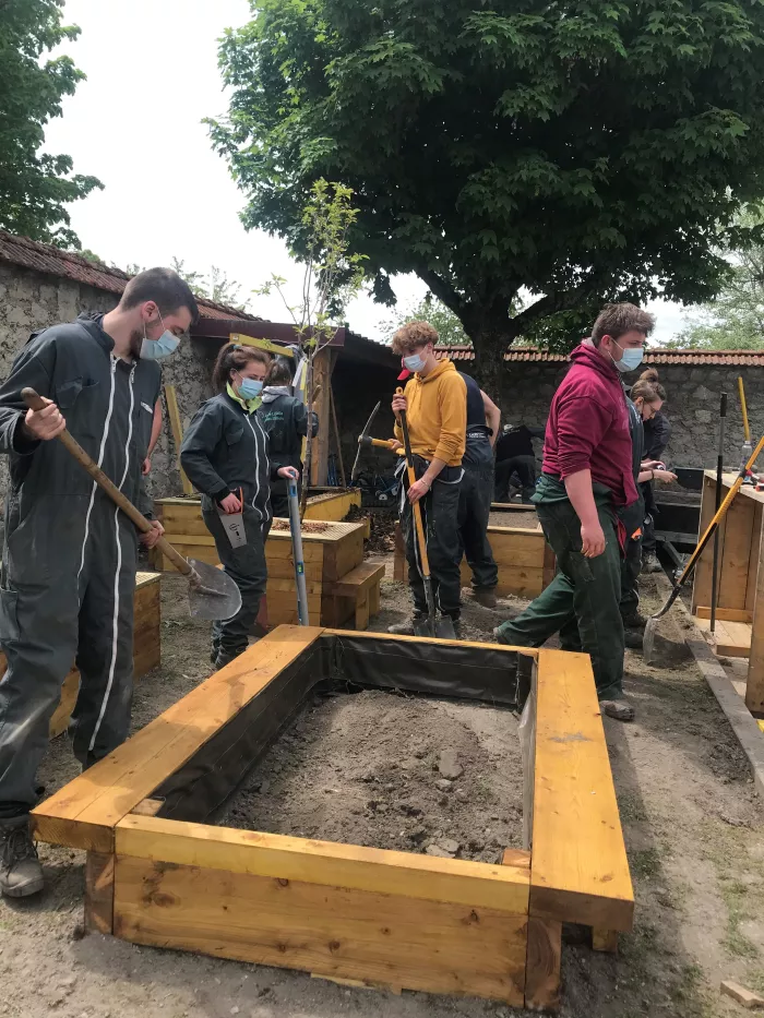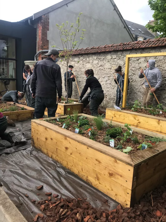 Les élèves de terminale professionnelle Aménagements Paysagers ont réalisé un aménagement dans la cour de la maternelle Jeanne d’Arc à Reims.