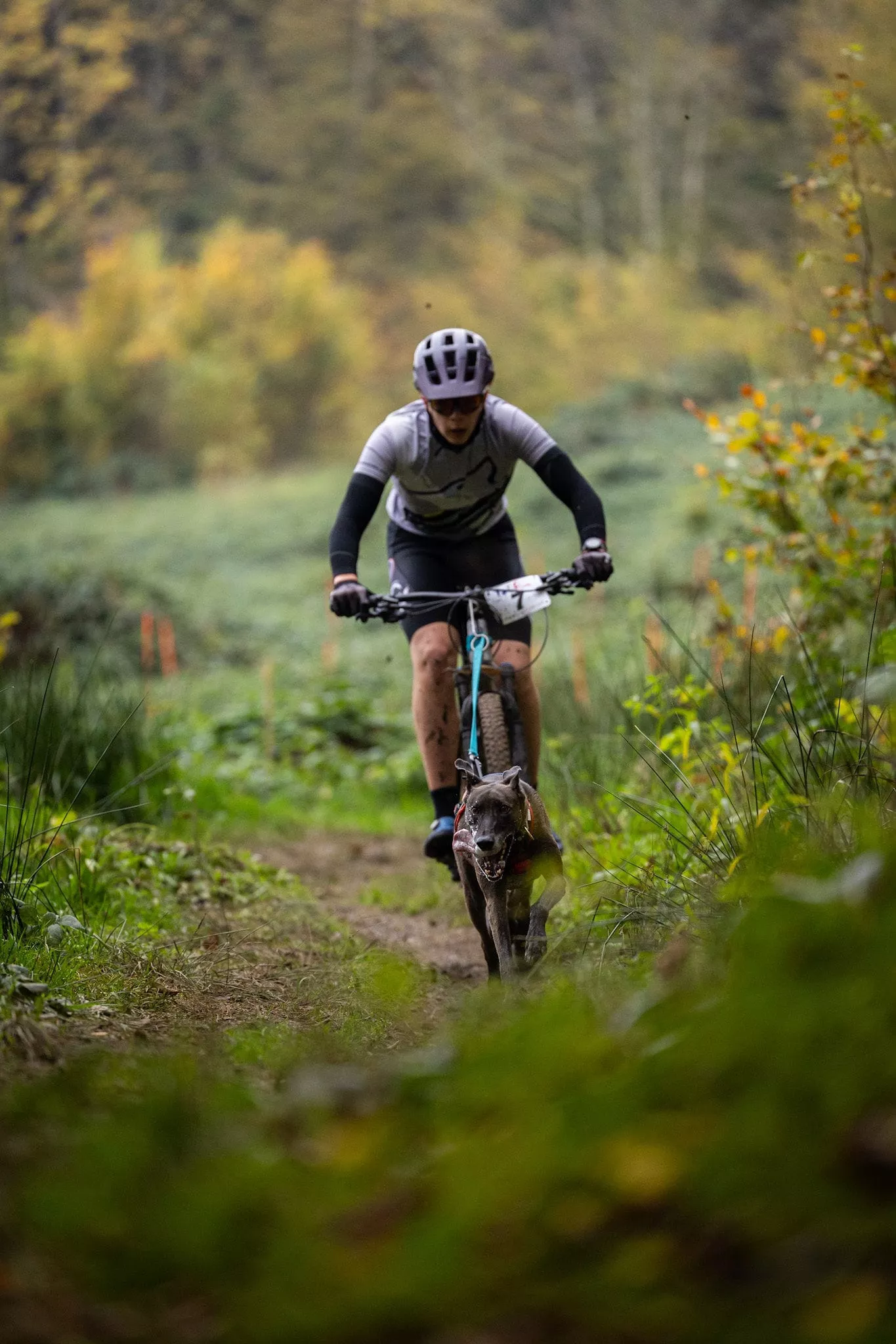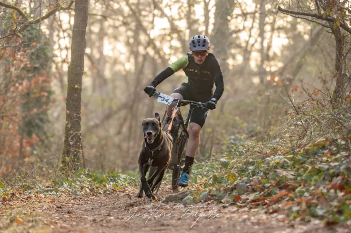 Le Cani-VTT est un sport qui mélange VTT et traction canine. Cette activité repose sur la complicité et l'effort partagé entre le cycliste et son chien. L'idée est de pédaler sur son VTT pendant que le chien, équipé d'un harnais spécial, tire sur une ligne élastique reliée au vélo. Le cycliste fournit l'effort principal, mais le chien participe activement en tirant. Ensemble, ils peuvent atteindre des vitesses incroyables en suivant les instructions vocales du cycliste. Cette discipline nécessite de l'entraînement et de la confiance mutuelle, mais offre des moments d'évasion uniques, loin du stress quotidien 🙂