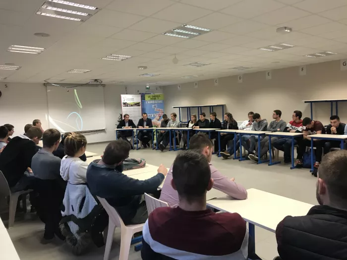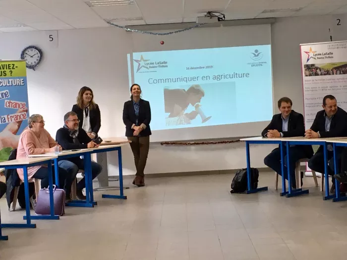 Nous avons organisé un après midi de débats et d'interventions autour de la communication en agriculture. Les étudiants de BTS ACSE 2ème année de Rethel et de Thillois ont participé à ces échanges accompagnés d'enseignants et de personnes impliquées dans la communication nationale et régionale. Nous avons choisi de mixer les lycées pour enrichir les échanges et les confrontations d'idées entre les étudiants.