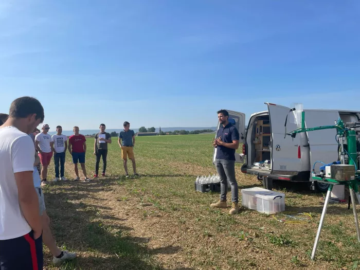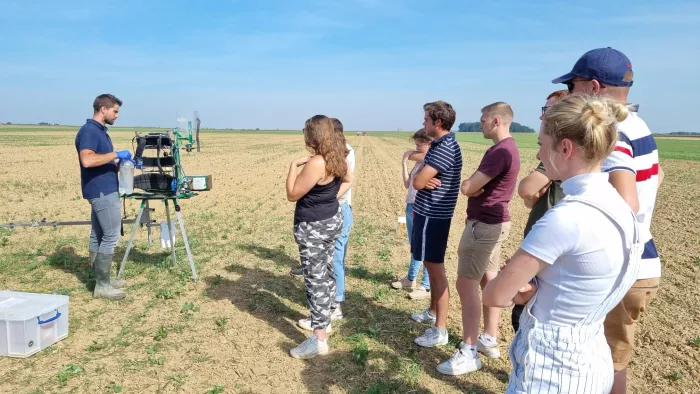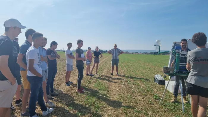 Découverte d’une plate-forme d'essai avec les étudiants de BTS ACSE2. Après une présentation générale sur l'expérimentation par M. Florentin Dubois, ANTEDIS, direction Marchéville-en-Woëvre où les étudiants ont eu la chance de participer à une présentation du protocole, des matériels, et à une simulation de traitements sur parcelle. Cela a été complété par un comptage de semis sur colza. La journée s’est poursuivie par un après-midi « temps fort coopération de groupe » au Lac de Madine. 4 équipes pour un trésor : des mini épreuves pour récolter des indices. Jeux de mimes, parcours à l'aveugle ou quiz sur l'agriculture, chacun a participé avec entrain. Cette belle journée s’est clôturée par un moment de détente bien mérité avec une baignade dans le lac.