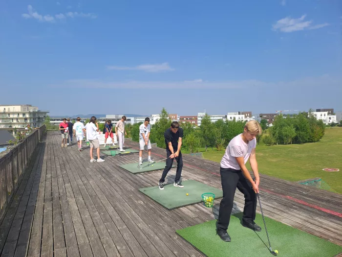 13 juin 2025 ⛳ Les apprentis en BTS Aménagements Paysagers au Golf de Bezannes. Au programme : visite du Green avec les caractéristiques et techniques d'entretien, puis initiation au golf sur le practice 🏌♀😎