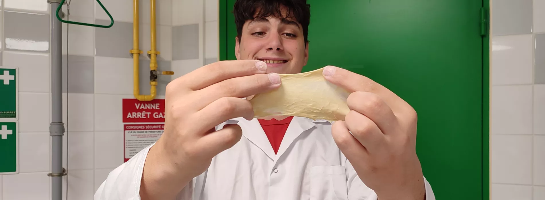 Après la visite du Moulin des courtils à Acu-Romance, les élèves ont fait des expériences sur la farine : test Pékar pour différencier la farine T 45 et la farine T 110 avec la mesure de l'extensibilité du gluten. Pour terminer, ils ont élaboré des pâtes à pizza ![]()