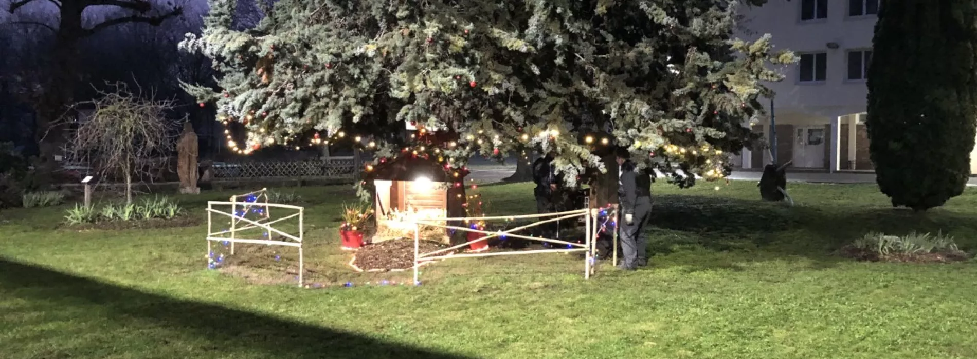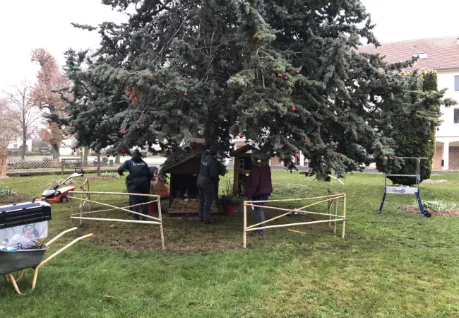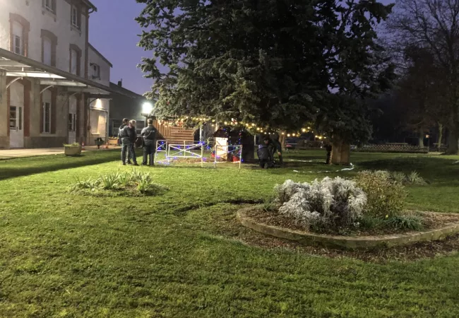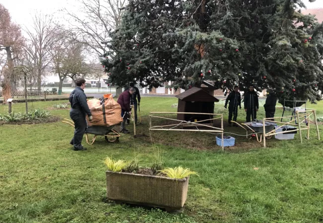 Les élèves de terminale professionnelle Aménagements Paysagers ont installé la crèche au pied du sapin dans le parc du lycée.