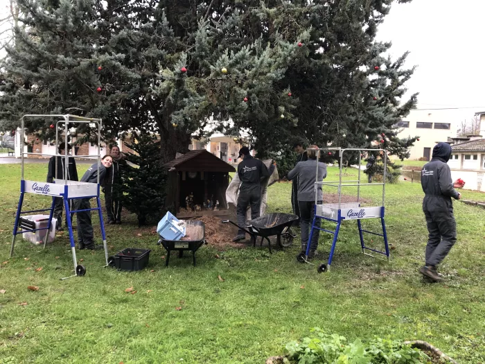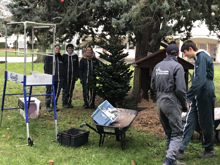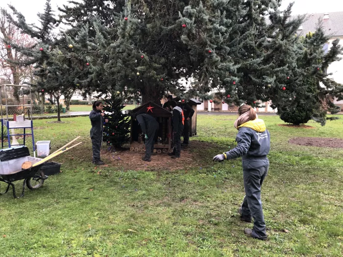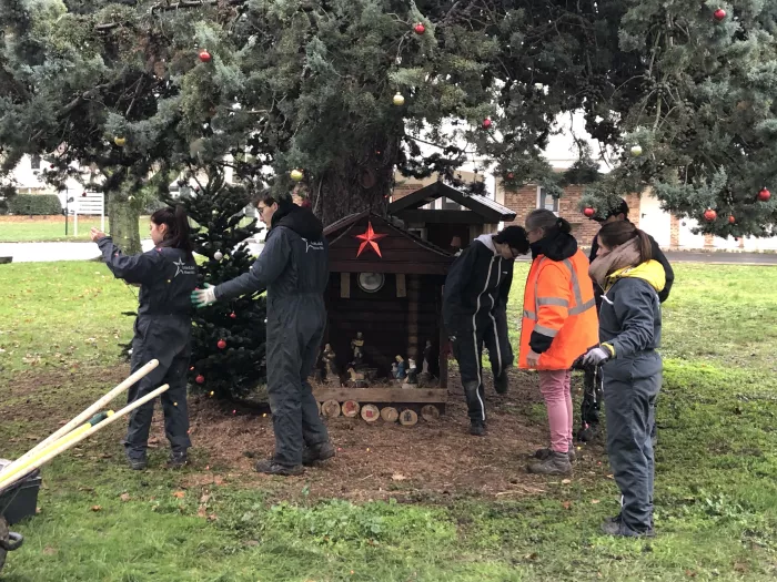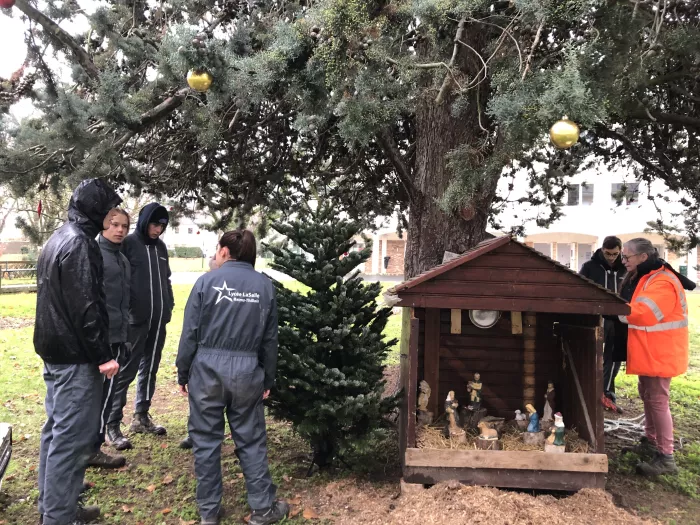 Les élèves de Terminale professionnelle Aménagements Paysagers ont, malgré le froid et la pluie, installé la crèche de Noël dans le parc du lycée. Nous allons tous pouvoir en profiter Merci pour ce bel aménagement