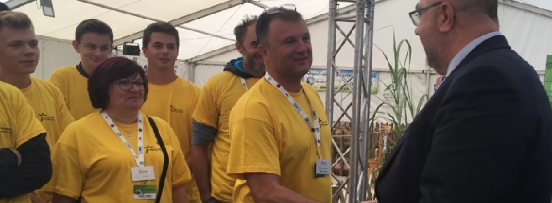 Le Ministre de l’agriculture, Stéphane Travert, lors de son passage à la Foire agricole de Châlons-en-Champagne, félicite l’équipe du lycée Lasalle Reims Thillois pour son action auprès des animaux et sa participation active à la ferme de la Foire de Châlons.