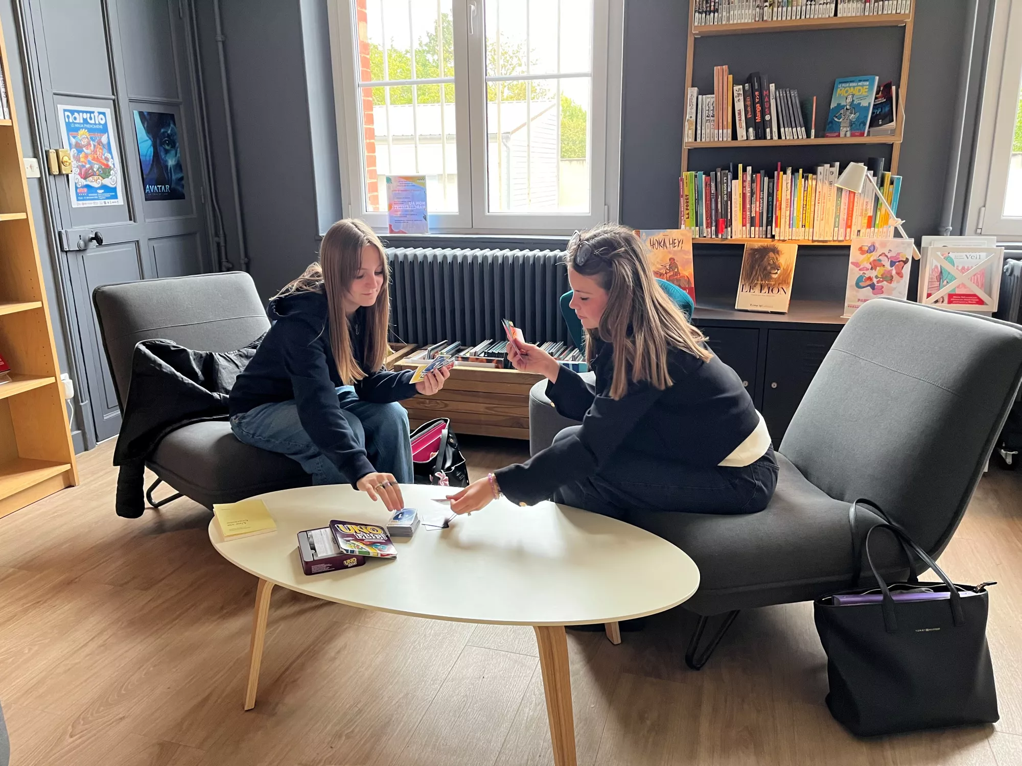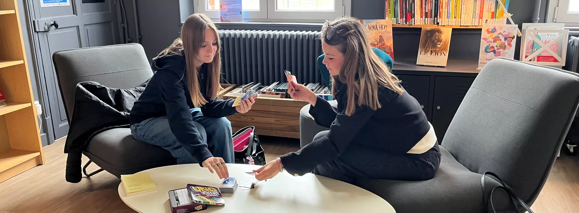 Partie de Uno Flip entre filles 😄 au CDI.