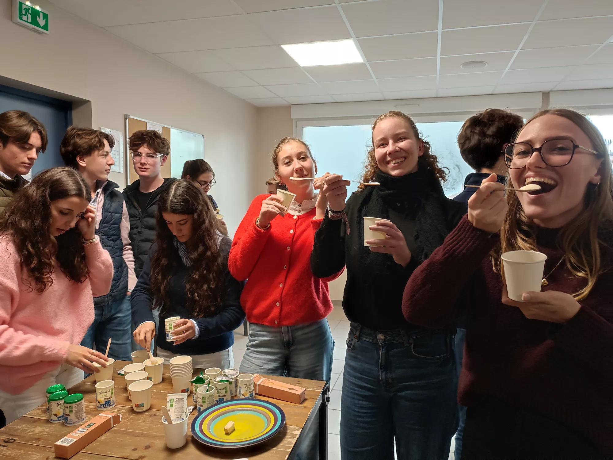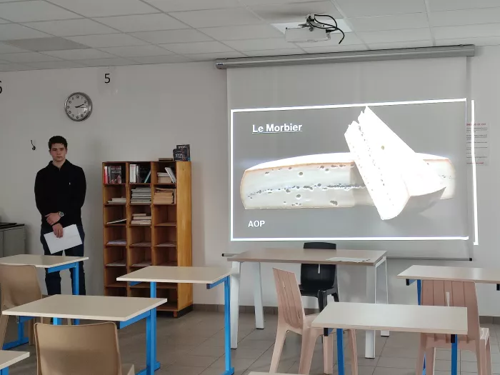 10 décembre 2025 👩🏫🧑🏫 Cidre de Normandie IGP, Yaourt Malo bio, Bleu d'Auvergne AOP et Morbier AOP pour les oraux de pratique pro en STAV cette semaine 😋