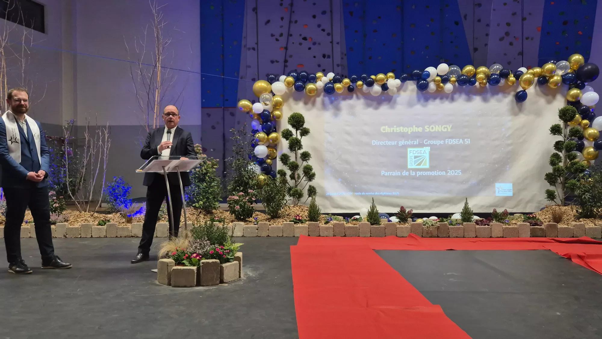 🧑🎓 M. Christophe SONGY, directeur général du Groupe FDSEA 51, parrain de cette promotion 2025, s’est adressé aux jeunes diplômé(e)s pour les encourager pour la suite de leur parcours et leur prodiguer quelques conseils ! Nous le remercions d'avoir été le parrain de cette promotion 🙂