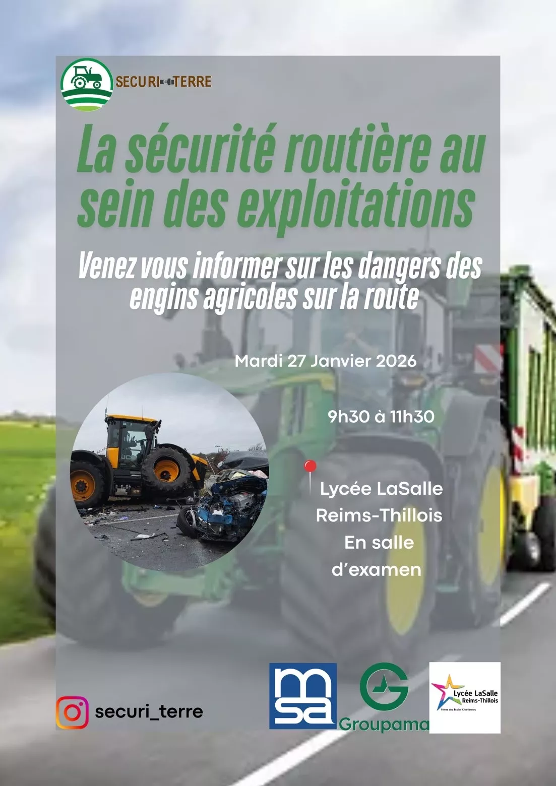 Janvier 2026 🚜 Nous sommes 4 étudiants en BTS ACSE 2, Margot, Clément, Charles et Rémi. Dans le cadre de notre projet PIC, nous avons décidé d'organiser une table ronde sur le thème de la sécurité routière en tracteur.