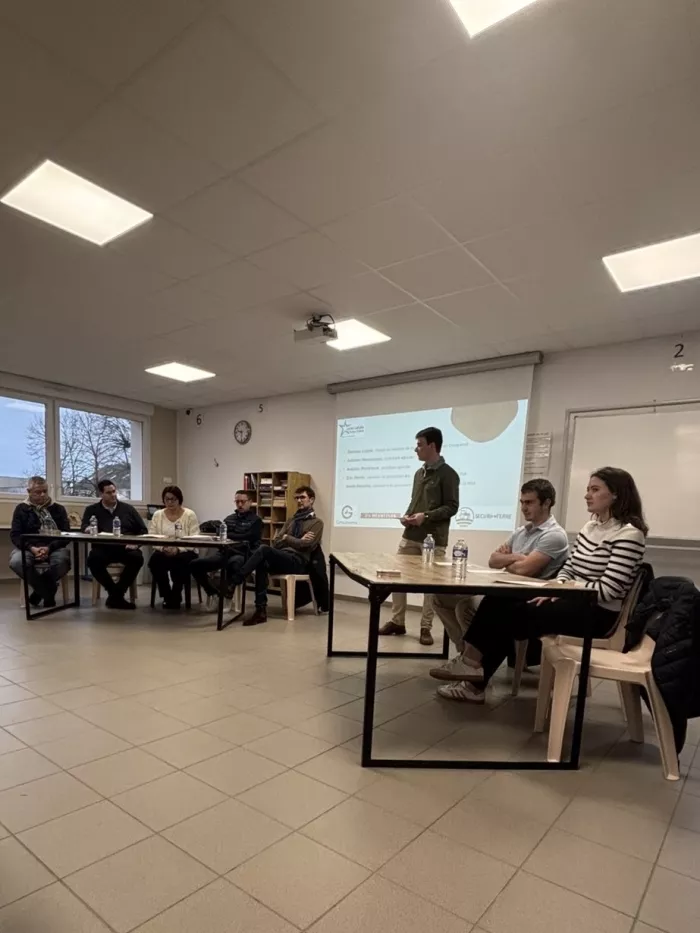 📍 Durant celle-ci sont intervenus : M. Perrin et Mme Decorte de la MSA , M. Lajoie de chez GROUPAMA , ainsi que M. Mennesson et M. Perdrieux, exploitants agricoles. Nous avons nous même animé la table ronde.