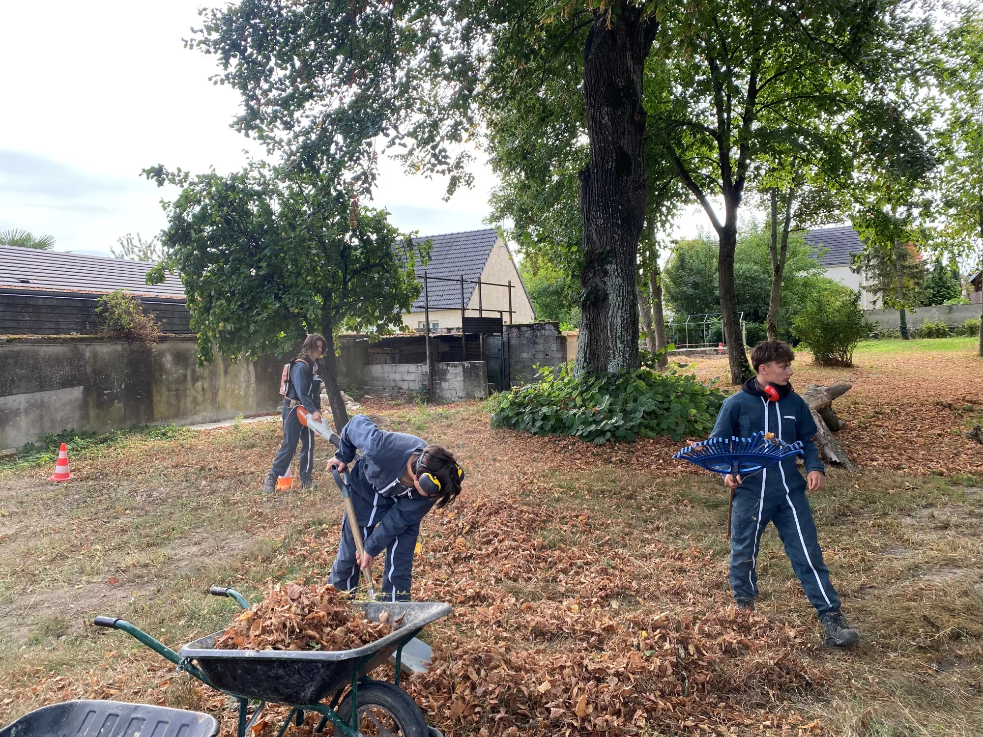 👨🌾 Au programme : ♻ Restructuration du lieu de compostage 🍂 Land Art avec la réalisation d'un 🧡 en feuilles d'automne 🤩