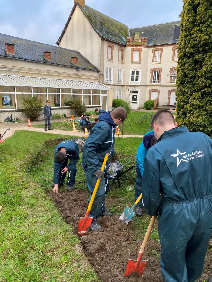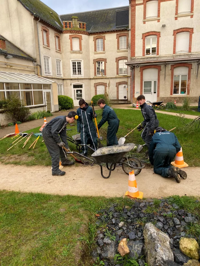 26 novembre 2024 🌿 TP dans le jardin du CDI avec les élèves de 2nde professionnelle NJPF : travail de végétalisation de la rivière sèche 🌱🎋