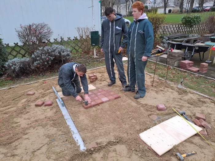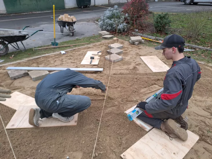 Nos élèves de terminale professionnelle ont réalisé une pose de pavés dans le cadre de leur formation.💡 Une activité mêlant précision, travail d’équipe et technique, avec un résultat au top !🙌 Bravo à eux pour leur talent et leur implication ! 👏