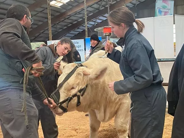 Chaque élève a eu en charge un troupeau de veaux tout le week-end. Chacun a aidé l’éleveur à nettoyer les bêtes, à les pailler, afin d’être choisi pour monter sur le ring.