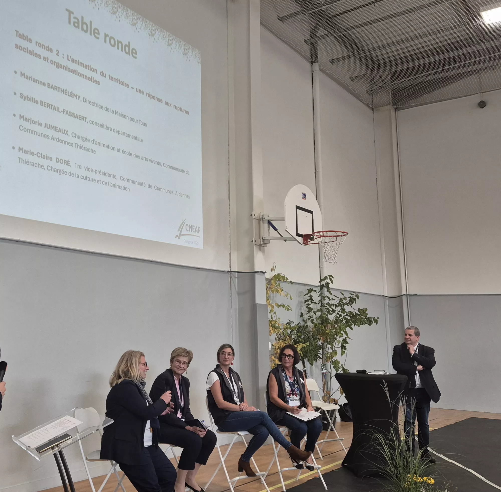 Merci aux intervenantes : Marianne Barthelemy, directrice d’une MJC ; Sybille Bertail-Fassaert, vice-présidente du conseil départemental de l’Aube et vice- présidente du collège des Cordeliers, en charge de la jeunesse, des sports, de la citoyenneté ; Marjorie Jumeaux, chargée d’animation de la Communauté de Communes Ardennes Thiérache ; Marie-Claire Dore, 1ère vice-présidente de la Communauté de Communes Ardennes Thiérache en charge de la culture et de l’animation.