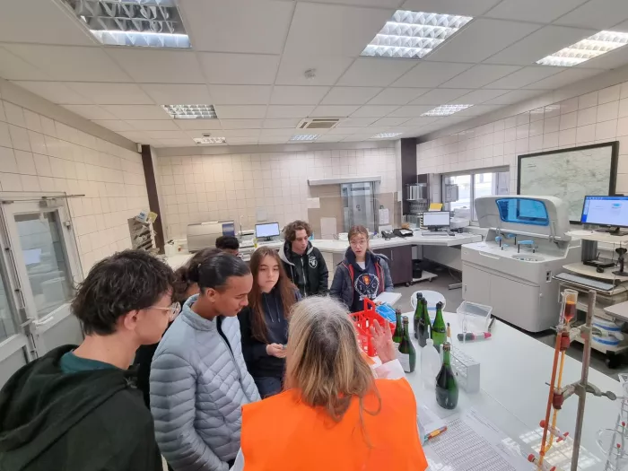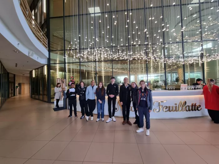 Nos élèves ont également eu la chance de visiter le laboratoire œnologique Nicolas Feuillatte , où ils en ont appris davantage sur les techniques et analyses spécifiques réalisées tout au long du processus de fabrication .