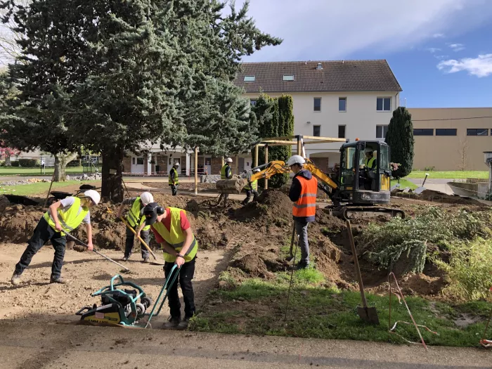 Ils participent ainsi aussi à l'avancement des travaux débutés la semaine dernière par les apprentis pour l'aménagement central du parc du lycée