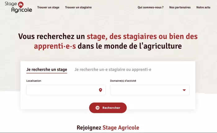 "Né d’une initiative locale des Jeunes Agriculteurs de Gironde en 2016, le projet a rapidement pris de l’ampleur, atteignant une échelle régionale dès 2018, avant de se déployer dans plusieurs régions françaises. Face au besoin d’optimisation de l’outil, un nouveau site, plus performant et plus intuitif, a vu le jour. En parallèle, la création de l’association Stage Agricole en 2021 a permis de professionnaliser la gouvernance du projet, aujourd’hui portée par huit syndicats régionaux Jeunes Agriculteurs siégeant au conseil d’administration."