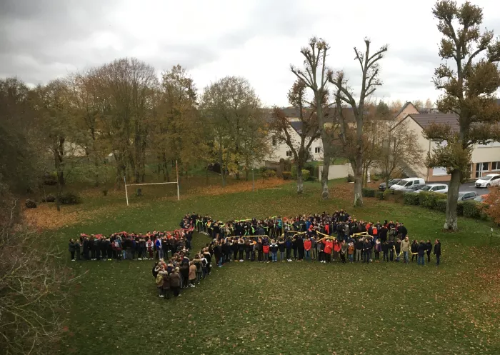 Jeunes et adultes de l'établissement se sont rassemblés pour constituer l'étoile, symbole du réseau.