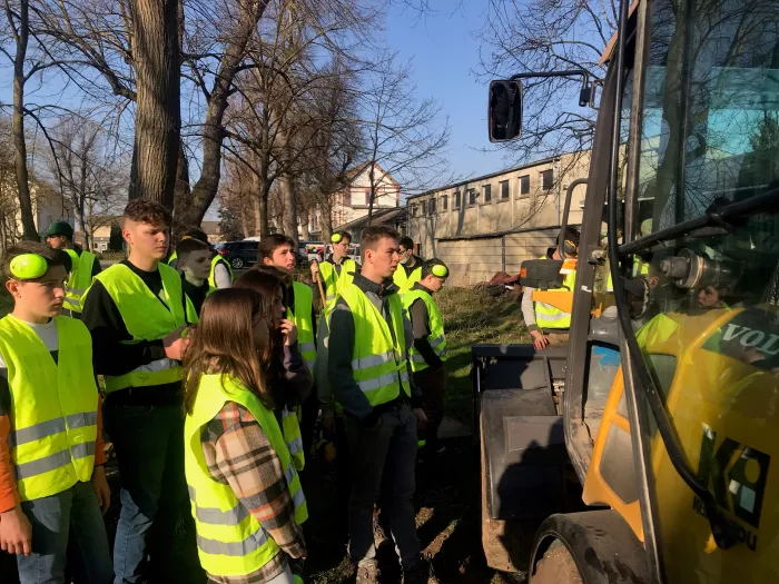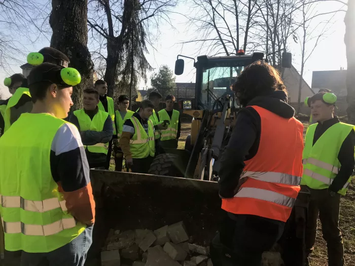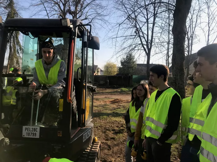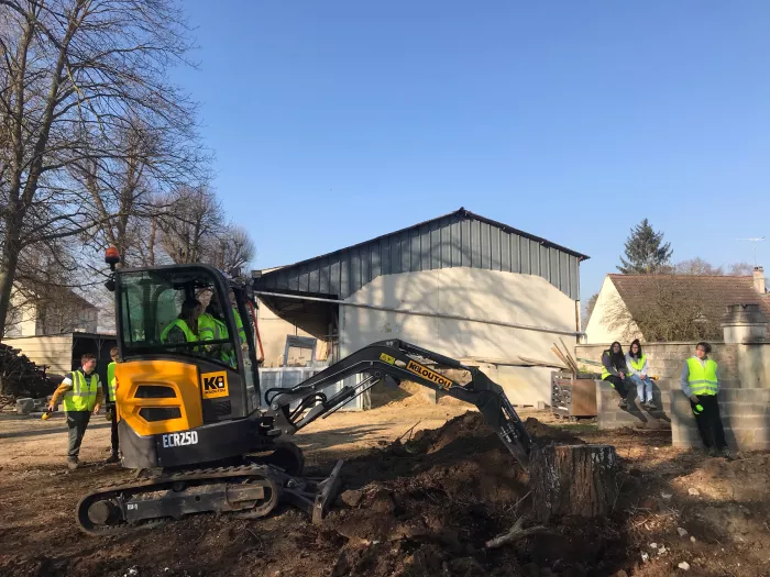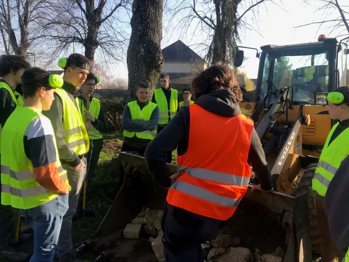 Les élèves de Terminale professionnelle Aménagements Paysagers en CACES mini pelle présentent les engins aux élèves de 2nde Pro. AP.