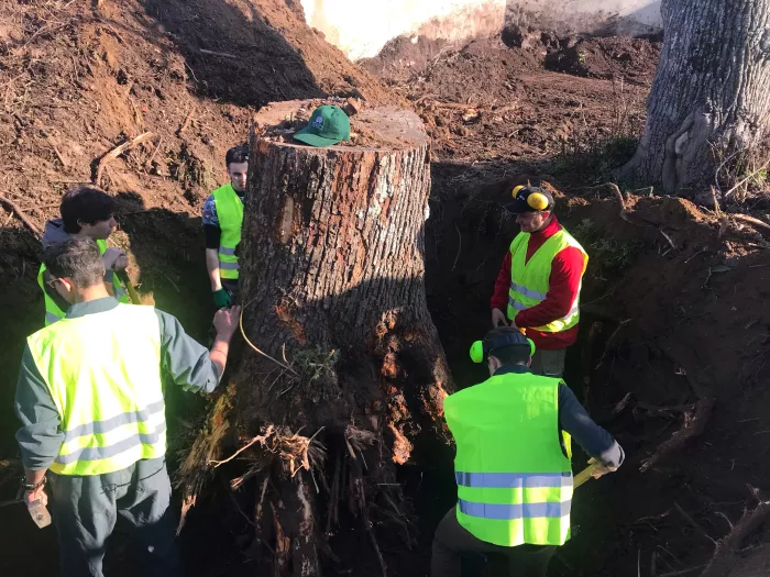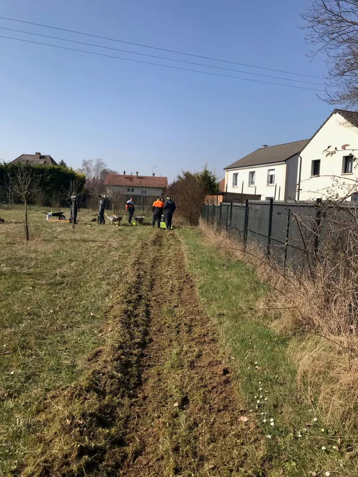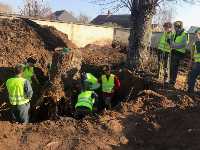 TP avec les élèves de 2nde professionnelle Aménagements Paysagers : préparation de terrain en vue d’une plantation de haie mixte de 120 m.